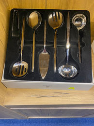 Een stijlvolle en complete serveerset van Karaca, uitgevoerd in hoogwaardig roestvrij staal. De set wordt geleverd in een luxe doos met op maat gemaakte binnenzijde, ideaal om cadeau te geven of om zelf van te genieten
