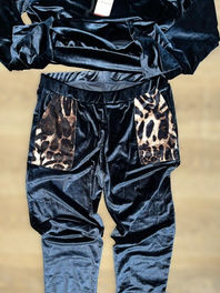 Comfortabel en stijlvol velvet huispak van Arnetta in zwart met subtiele panterdetails. De zachte stof en trendy accenten maken dit setje perfect voor relaxte dagen in stijl.